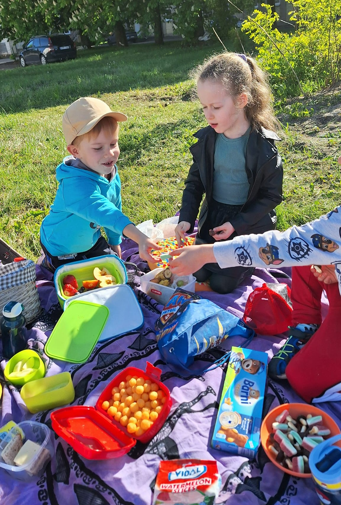 Kad jau pamokėlių metu kalbame apie pikniką , tai ir pasidarėme tikrą iškylą gamtoje.
